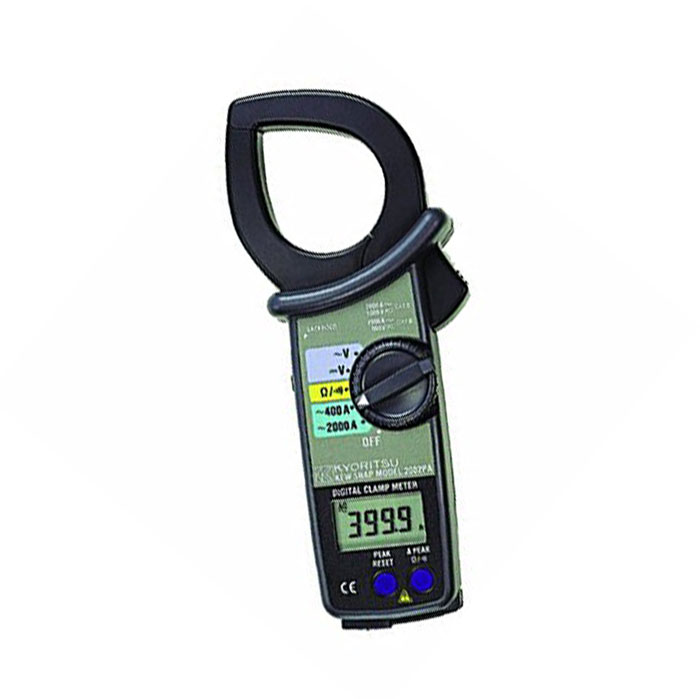 کلمپ آمپر متر دیجیتال کیوریتسو مدل KYORITSU 2002PA با قابلیت اندازه گیری جریان تا 2000 آمپر AC را دارد و با قطر دهانه بزرگ و گیره اشکی شکل میتواند به راحتی کابل مورد نظر را در میان چندین کابل انتخاب و اندازه گیری کند.همچنین می توان ولتاژ متناوب و مستقیم ، مقاومت را نیز اندازه گیری کرد.این دستگاه سبک و با کاربری آسان مناسب برای اندازه گیری در بخش تعمیرات و مهندسین برق می باشد.