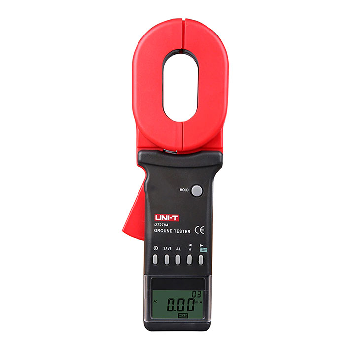 ارت سنج کلمپی مدل UT 278A ساخت کمپانی هنگ کنگی یونیتی ، قابلیت اندازه گیری مقاومت سیستم ارتینگ بدون نیاز به قطع مدار زمین و یا کوبیدن میخ را دارد. با استفاده از این ارت تستر کلمپی میتوانید میزان مقاومت چاه ارت را در سیستم چاه های ارت موازی به راحتی اندازه گیری کنید.تفاوت این مدل نسبت به مدل 275 در دقت و رنج اندازه گیری مقاومت ارت و جریان نشتی است. از دیگر قابلیت مهم این کلمپ قابلیت اندازه گیری جریان نشتی در حد میلی آمپر تا 30 آمپر است و قابلیت ذخیره سازی مقادیر اندازه گیری شده تا 99 مقدار را دارد.برای این دستگاه در هم برای یک بازه مقاومتی و هم برای یک بازه جریانی میتوانید آلارم تعیین کنید.